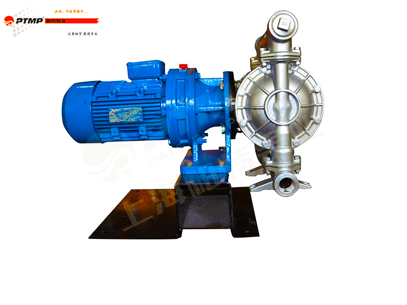 電機通過減速箱帶動左右兩端柱塞上面的隔膜一前一后往復運動。在左右兩個泵腔內,裝有上下四個單向球閥,隔膜的運動,造成工程腔內的容積的改變,迫使四個單向球閥交替地開啟和關閉,從而將液體不斷地吸入和排出。